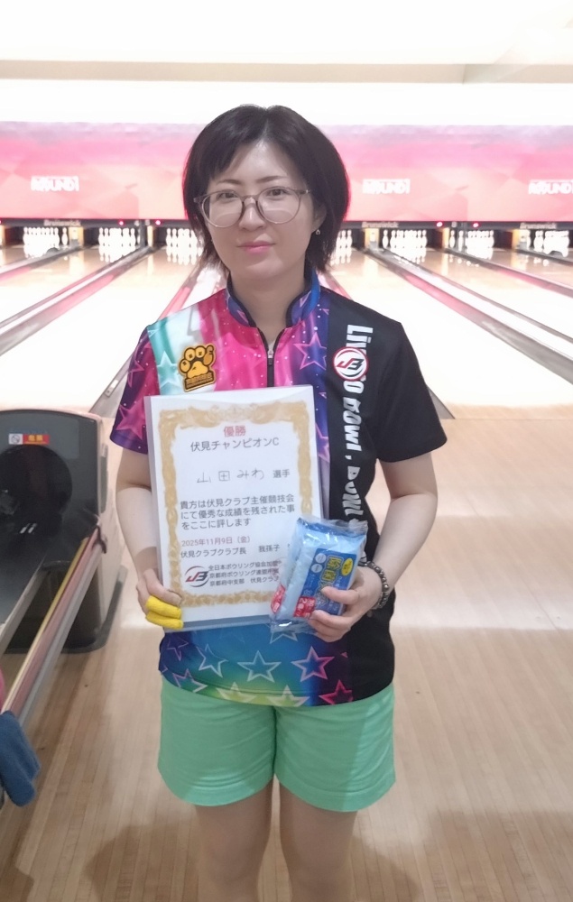 【開催日程】2025年10月17日(金)【優勝者】山田 みわ選手(A2級)※選手ランクは優勝時点上位は以下です。【優勝】山田みわ選手954ピン【準優勝】末永雅行選手834ピン【第3位】松村清志選手781ピン山田みわ選手はダービーに続いて、菊花賞も制覇しました。