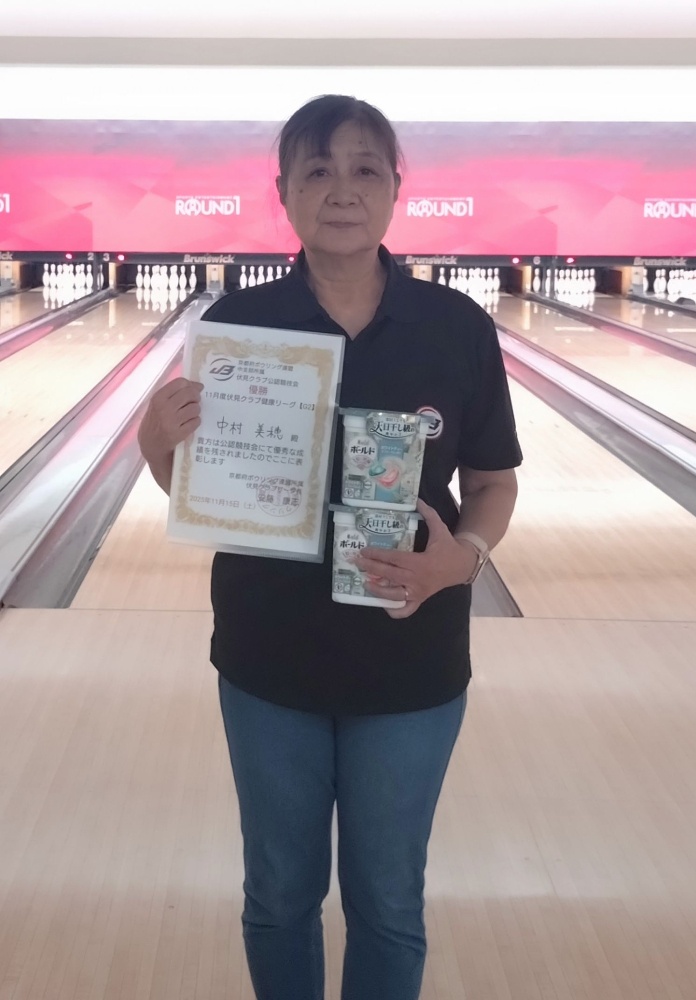 【開催日程】2025年10月11日(土)【優勝者】中村 美穂 選手(B1級) ※選手ランクは優勝時点10月度伏見クラブリーグの優勝は中村美穂選手がリーグ初優勝しました。優勝ポイント獲得500ポイント!【優勝】中村 美穂 選手 803ピン