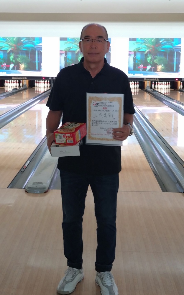 【開催日程】2025年11月29日(土)【優勝者】山内 忠則 選手(B1級) ※選手ランクは優勝時点山内選手はクラブリーグ初優勝で500ポイントを獲得!今後の活躍にも目が離せません!【優勝】山内 忠則 選手 856ピン