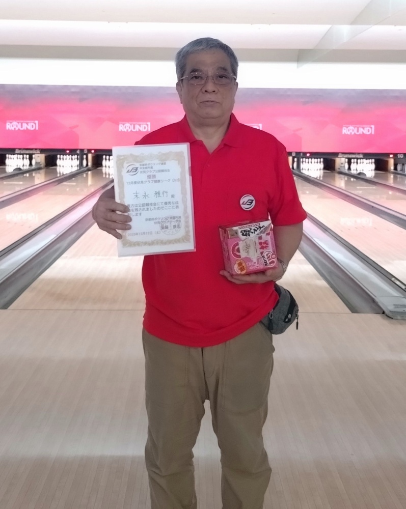 【開催日程】2025年12月13日(土)【優勝者】末永 雅行 選手(A1級) ※選手ランクは優勝時点A1級の末永選手がクラブリーグV、次回よりハンデ設定変更で競技される事になり今後のクラブリーグでの末永選手の活躍にも注目です。【優勝】末永 雅行 選手 874ピン