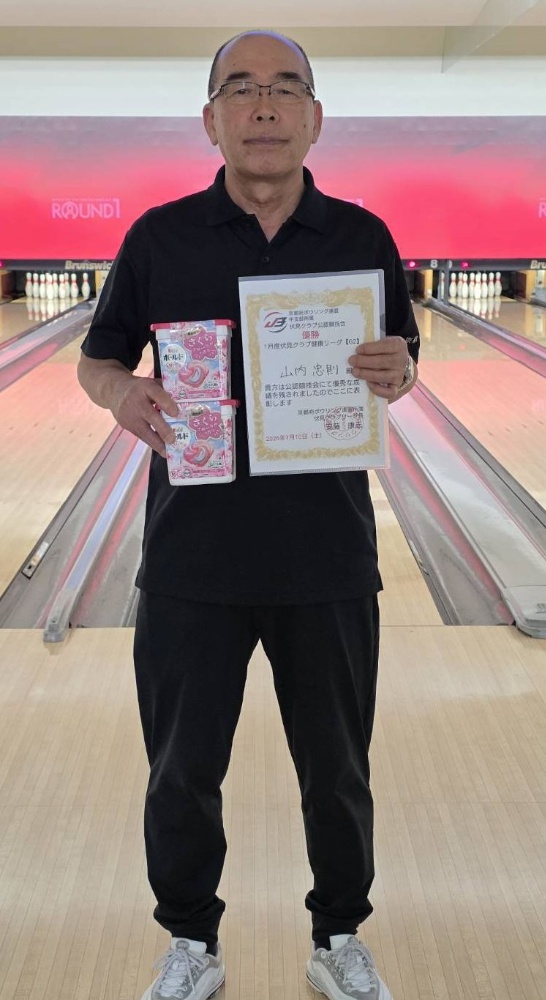 【開催日程】2026年1月10日(土)【優勝者】山内 忠則 選手(B1級) ※選手ランクは優勝時点2026年度新年最初のクラブリーグは山内 忠則選手の勝利でスタート、ポイント500点獲得して幸先のスタートを切りました。今後に注目下さい。【優勝】山内 忠則 選手 932ピン
