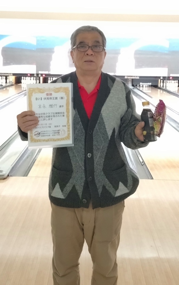 【開催日程】2025年6月8日(日)【優勝者】末永 雅行選手(B1級)※選手ランクは優勝時点末永雅行選手がV3を達成!獲得競技大会ポイントもA2昇格目前になりました。試合状況は工原選手(C級)245ピン、末永選手が246ピンを1G目に叩きトップ争いへ天辻選手(B2級)井尻湊斗選手(B1級)山田潤選手(A2級)も上位争いに食い込みましたが、末永選手が安定に逃げ切り、伏見稲荷賞を制覇しました。【優勝】末永選手 1369ピン